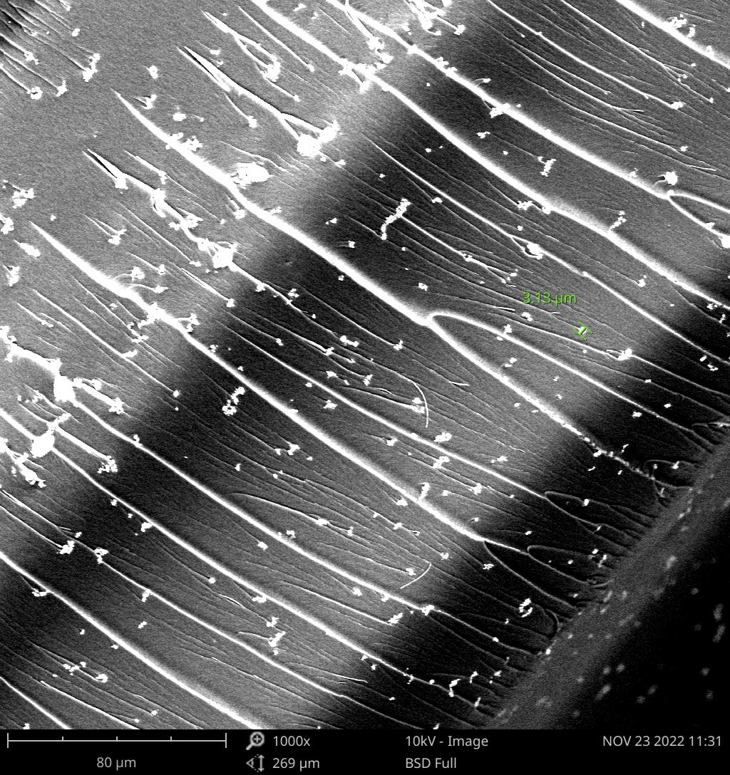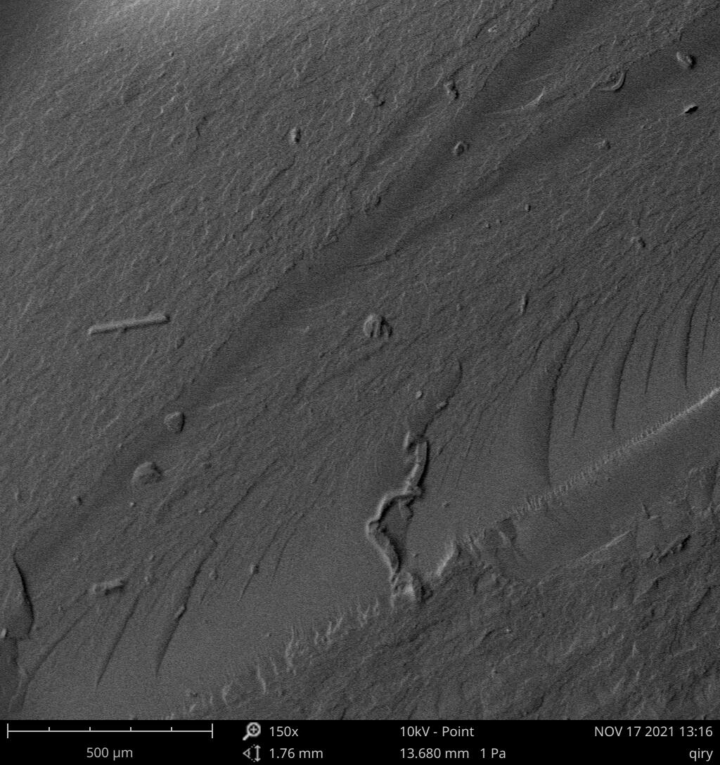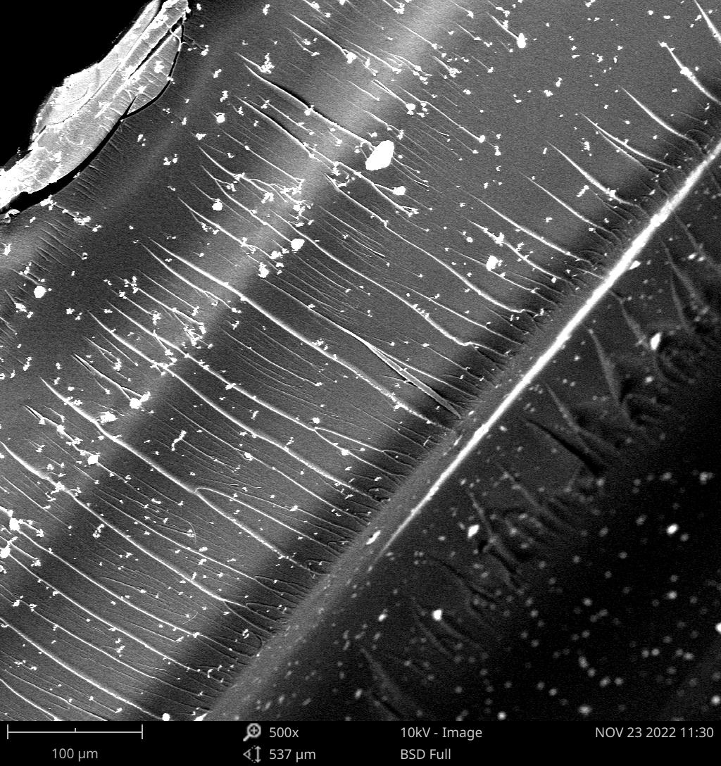 SEM images of the bending fracture surface (left: 500x, right: 1000x)